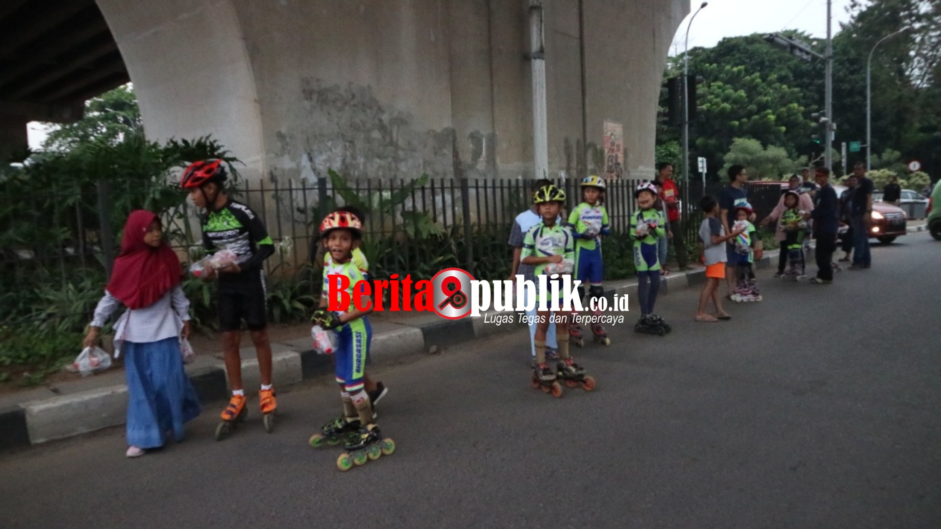 Sebanyak 20 anak mulai dari usia 3,5 tahun hingga dewasamengikuti aksi tersebut. Mereka menggunakan atribut juga pengawan yang biasa dipakai saat meluncur di atas sepatu roda.