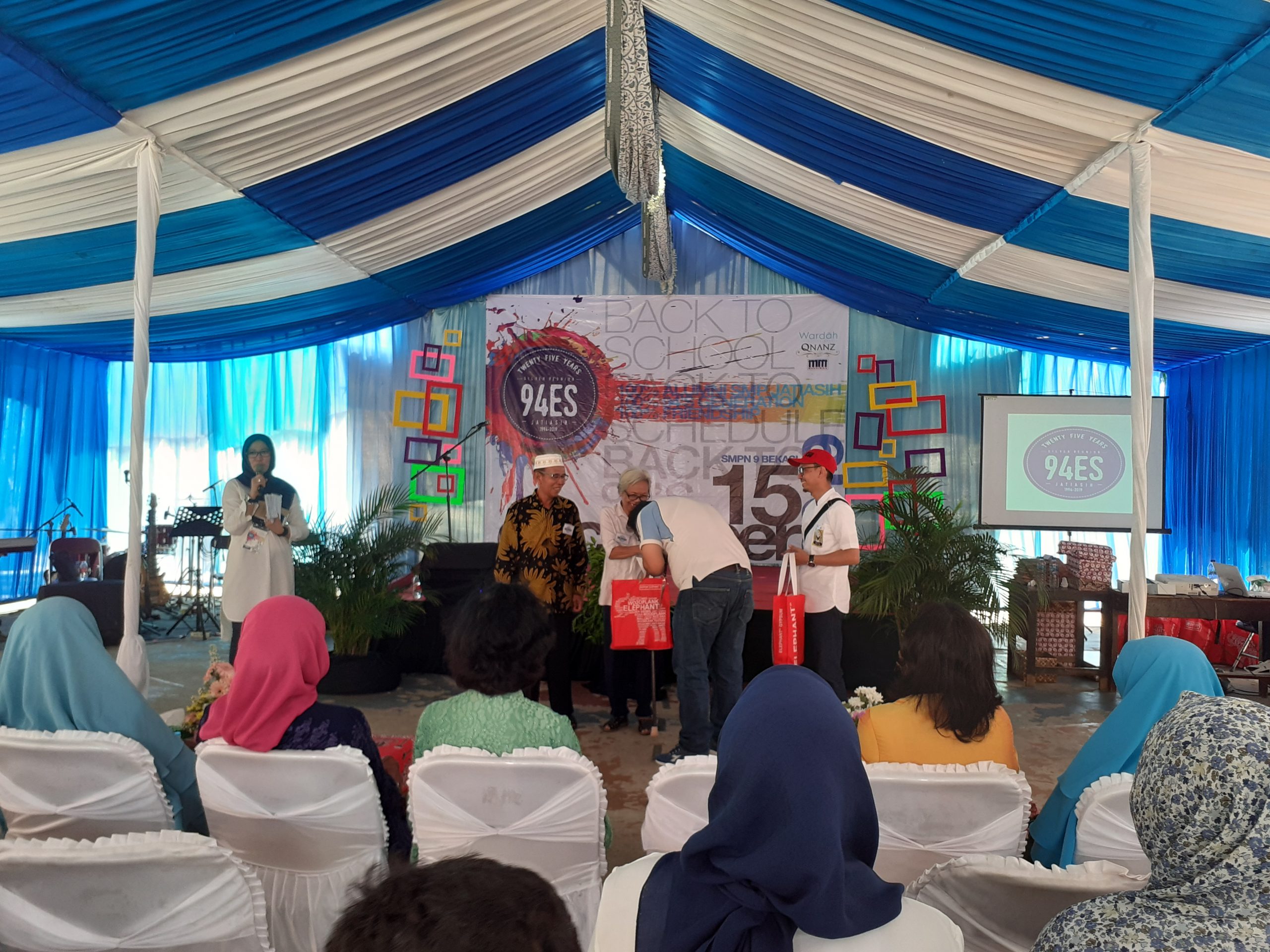 “Tak hanya kepada kepsek, tapi kami juga berikan hadiah kepada para guru – guru serta anak – anak yang dulu orang tuanya pernah sekolah disini. Semuanya ini menjadi bentuk rasa bersyukur para alumni 94,” sambungnya.