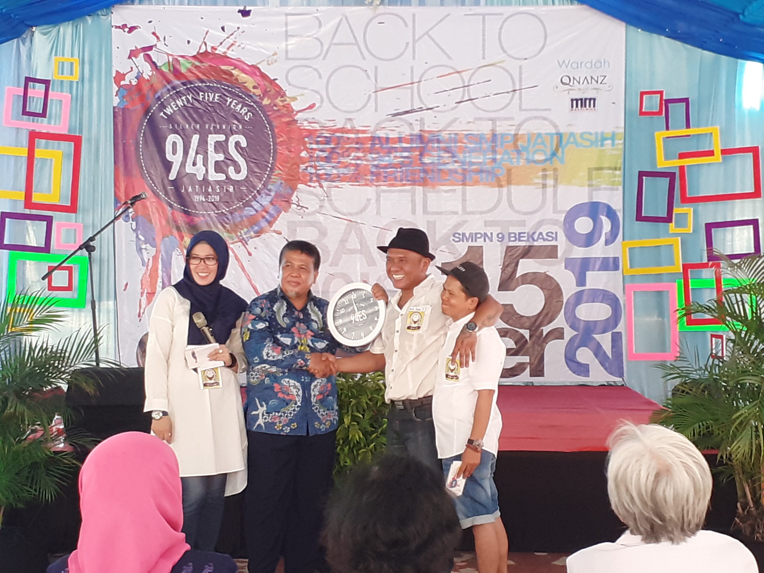 Dari pantau Beritapublik.co.id ratusan alumni angkatan 94 tampak riang gembira dapat berkumpul bersama di SMPN 9 Jatiasih. Tak hanya berkumpul, Kepala Sekolah SMPN 9 Jatiasih pun diberikan kenang – kenangan berupa jam dinding.