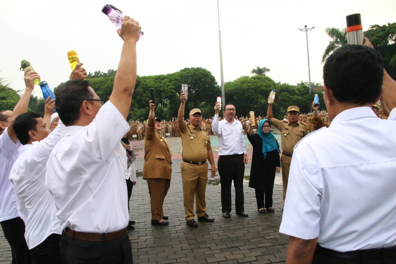 KOTA BEKASI, Beritapublik.co.id – Hari Peduli Sampah Nasional Tahun 2020 yang jatuh pada tanggal 21 Februari 2020, pada kesempatan apel pagi, para Aparatur Sipil Negara (ASN) dan Non ASN menyemarakkan HPSN 2020 dengan membawa tumbler air.