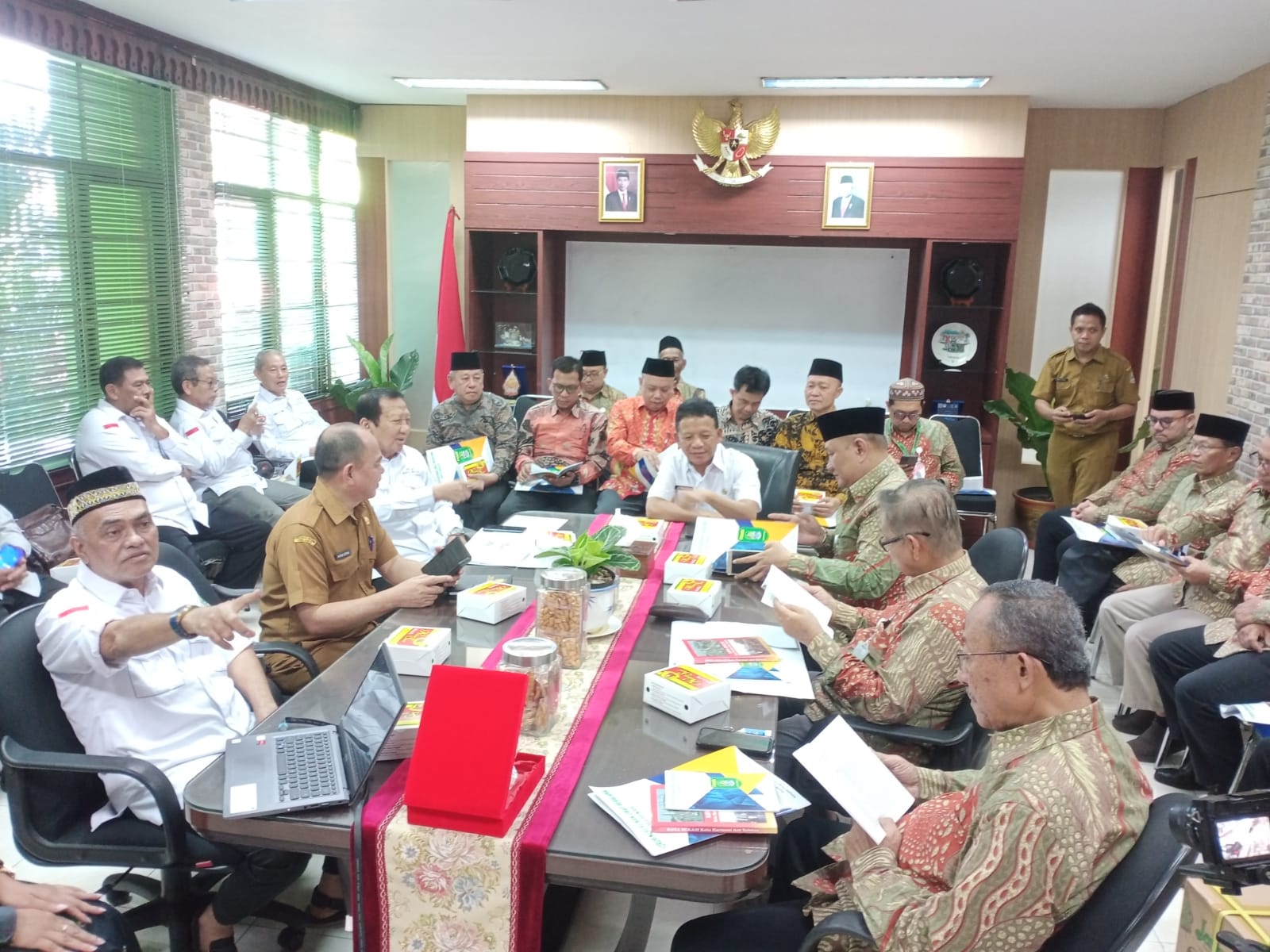 Kunjungan FKUB Surakarta diterima Pj Sekda Bekasi Junaedi, Plt. Kepala Kesbangpol Kota Bekasi, Warsim Suryana , Ketua FKUB Kota Bekasi, H Abdul Manan dan pengurus di Ruang Rapat Sekda Kota Bekasi.