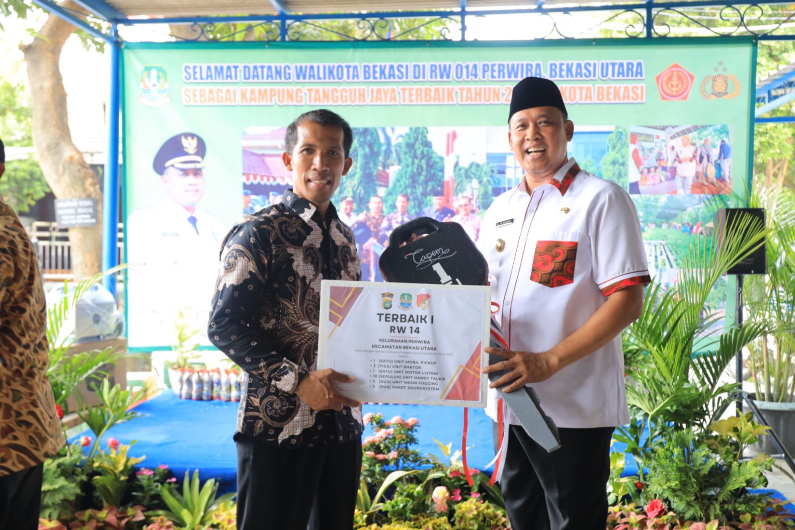 KOTA BEKASI, Beritapublik.co.id – Wali Kota Bekasi Tri Adhianto berikan secara langsung penghargaan kepada RW 14 Kelurahan Perwira Kecamatan Bekasi Utara sebagai Terbaik I Kampung Tangguh Jaya tahun 2023 di Kota Bekasi.