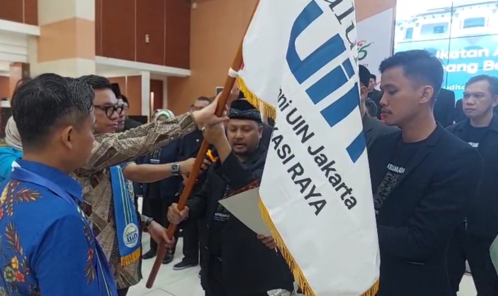 Ketua IKALUIN Jakarta Cabang Bekasi Raya, H. Abdul Somad, S. Ag,.MA, saat mengibarkan bendera